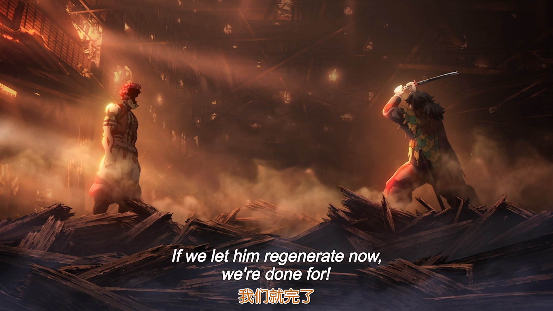 为了让变成鬼的妹妹祢豆子重新变回人类,灶门炭治郎加入了猎鬼组织“鬼杀队”,与同伴我妻善逸、嘴平伊之助一同对抗各类恶鬼,在成长的过程中彼此间的友情与羁绊也日益加深。此后,炭治郎与“鬼杀队”中最高级别的剑士“柱”们数次并肩作战。为备战即将到来的决战,炭治郎正与队员们一同挑战由“柱”们主持的联合强化训练时,鬼舞辻无惨突然现身于产屋敷宅邸。炭治郎与众“柱”虽为解救身处危机的主公大人而火速赶到,却遭无惨之手打入了一个神秘空间。炭治郎等人坠落之处,正是鬼的大本营“无限城”——“鬼杀队”与“鬼”的决战,就此拉开序幕。